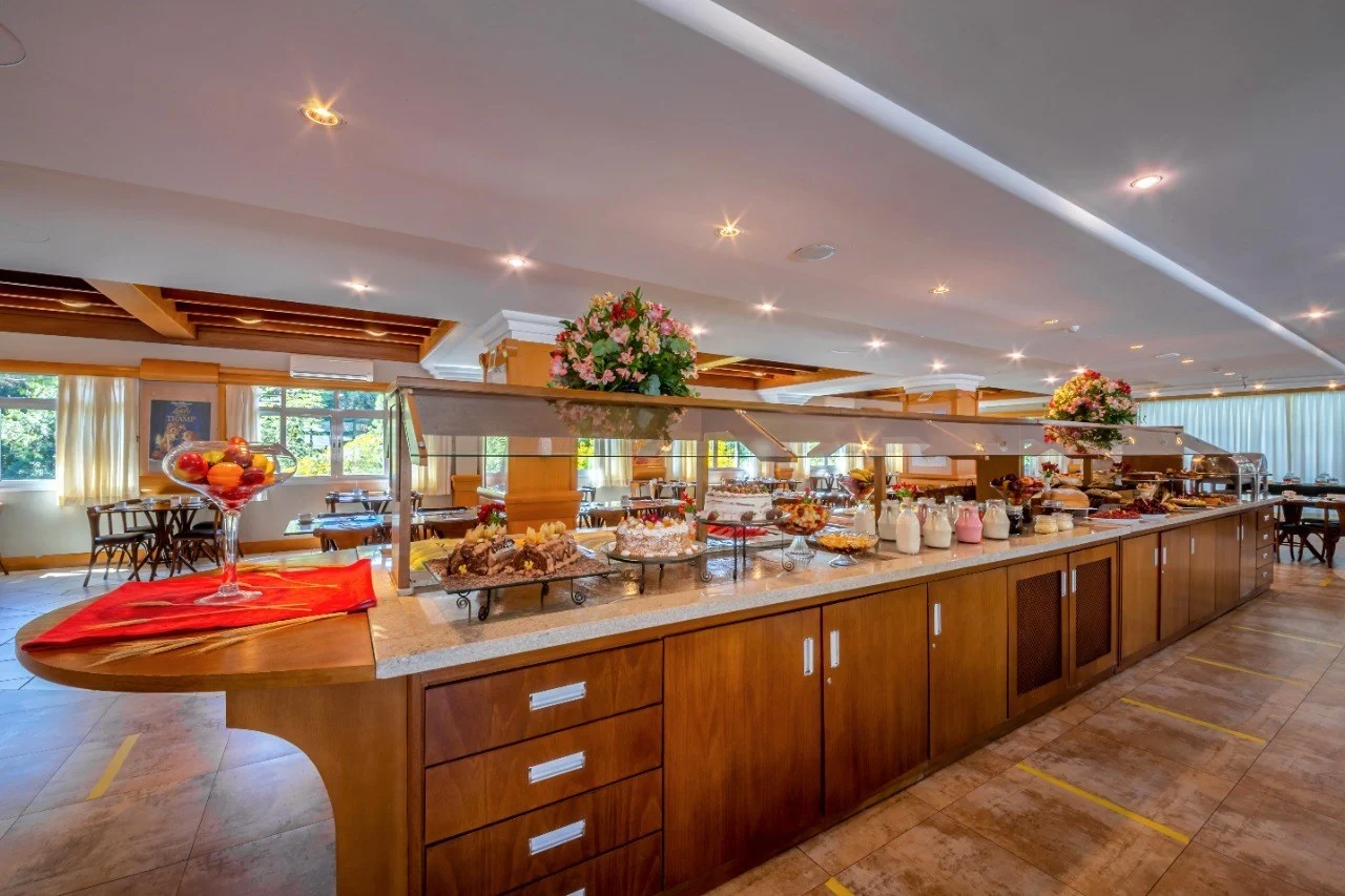 • O Hotel Laghetto Siena oferece café da manhã incluso na diária, servido em estilo buffet, com variedade de pães, bolos, frutas, frios, bebidas quentes e itens típicos da Serra Gaúcha, proporcionando um início de dia completo para os hóspedes.