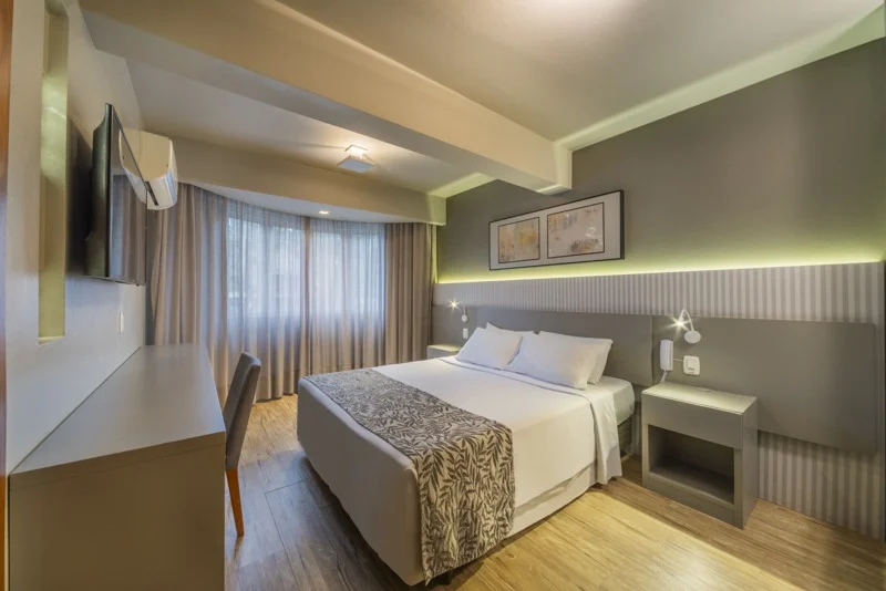 O hotel oferece uma estrutura prática e aconchegante, ideal para descanso após os passeios pela cidade. Entre os destaques: